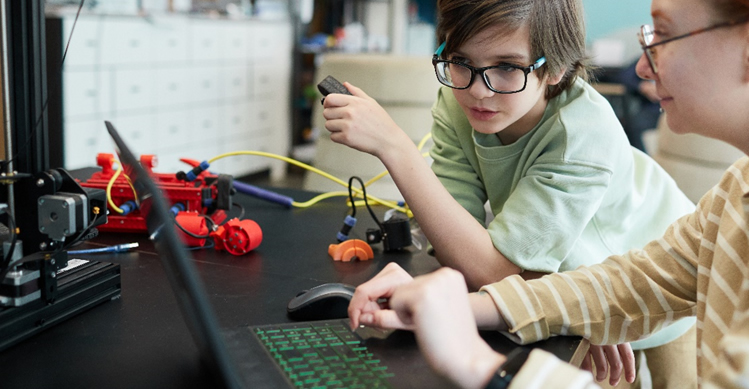Los niños crean sus proyectos en pequeños grupos, beneficiándose de la atención plena de los formadores e inspirándose unos a otros
